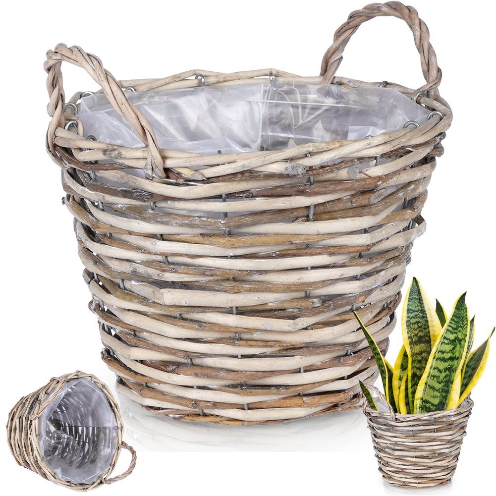 Original cover for plants, flowers and herbs. Made of wicker, handcrafted. Inside, lined with foil to prevent excess water from spilling out.