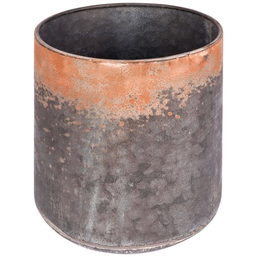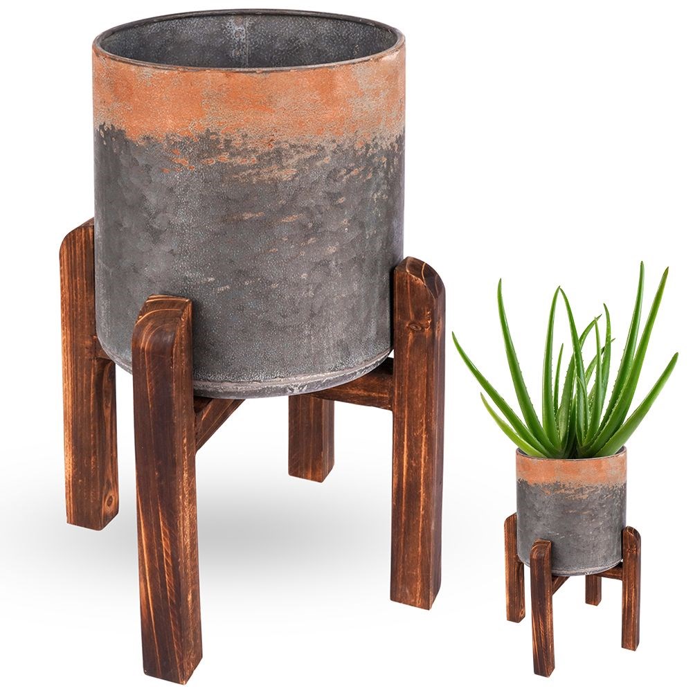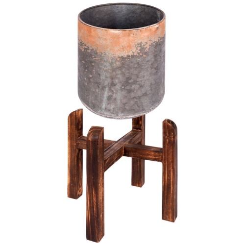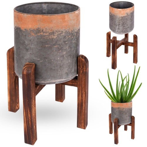 - STEEL- Made of high-quality steel in silver color with a rust effect. The flowerpot cover is in an antique style. Frame made of natural-looking wood. Perfect for placing on a windowsill or on the floor, table or chest of drawers.