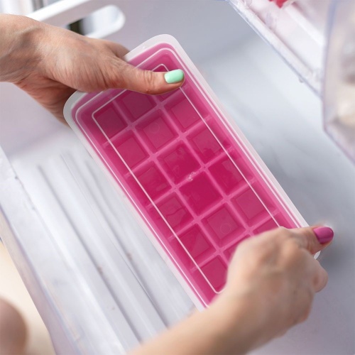 Form for ice to prepare 18 ice cubes. Includes an ice cube container and a spatula. It has a flexible bottom, thanks to which the pulling of ice cubes will be extremely easy. The cubes will be used for water, drinks and alcoholic drinks. In the mold, we can also freeze fruit juices and sorbets by getting frozen drinks in the form of ice cream. The form comes in different colors, it is not possible to choose - we send randomly. Manufactured in accordance with European standards.