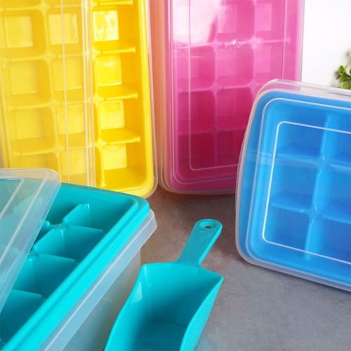 Form of ice cube mold with lid container and ice shoulder Excellent Houseware 12210