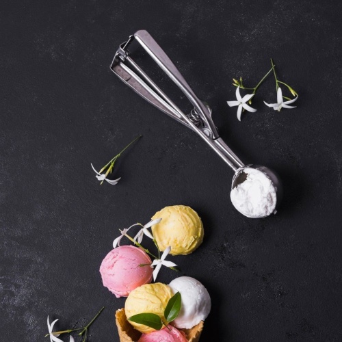 Ta łyżka pozwala na nabieranie idealnych oraz równych, okrągłych gałek.