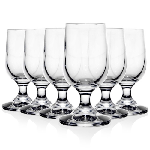 A set of six stemmed glasses with a timeless look. Glasses are useful for drinking strong alcohol. Their transparent color will make them match perfectly with other tableware. Glasses are a practical gift idea for loved ones and necessary in every home. Manufactured in accordance with European standards.