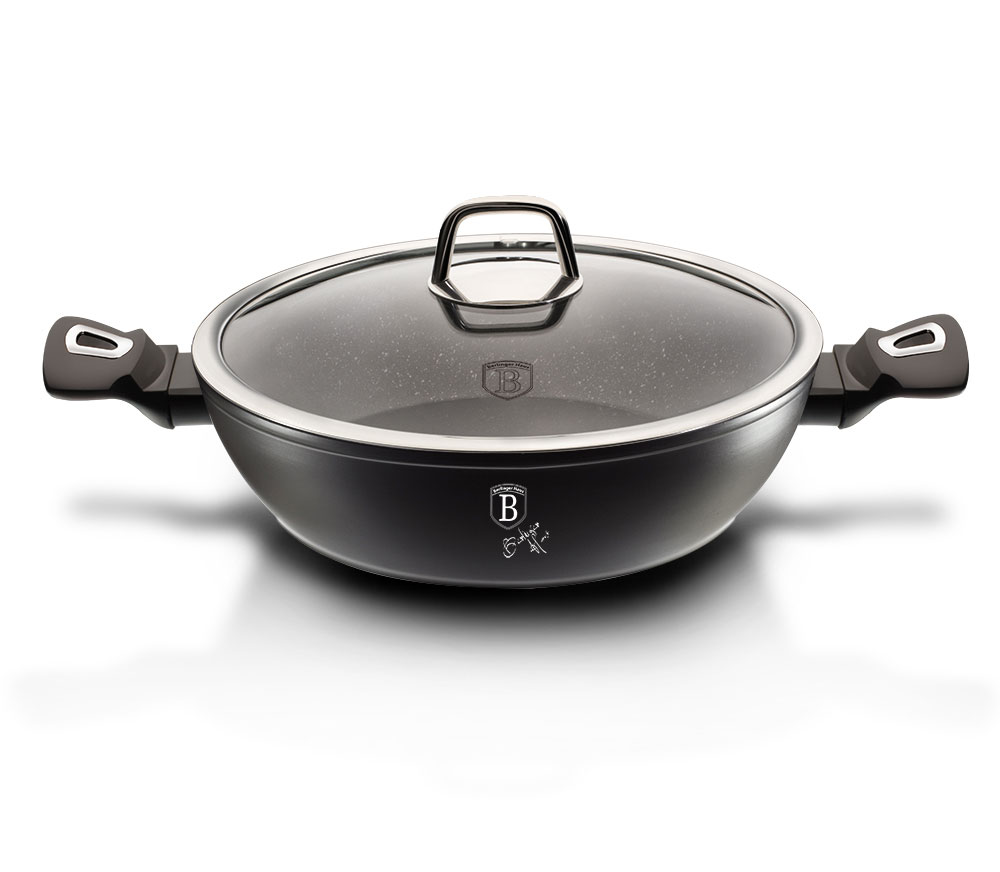 Granite Flat Pot with glass lid 28cm / 3.8L BERLINGER HAUS BLACK SILVER BH-1850