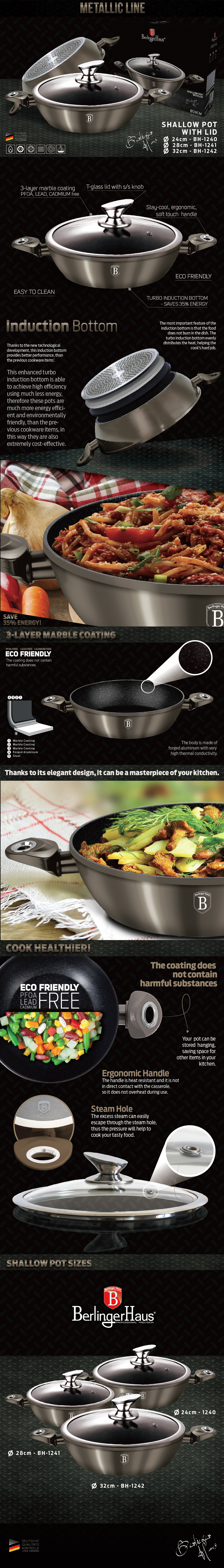 Wok / Shallow pot with lid 28 cm, BERLINGER HAUS Carbon Metallic Line BH-1241