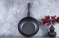 Granite coating makes the cookware extremely resistant to any scratches and durable. This type of pots and pans also allows you to fry with a minimum of fat, as the cookware heats up similar to a stone and gives off heat over its entire surface.