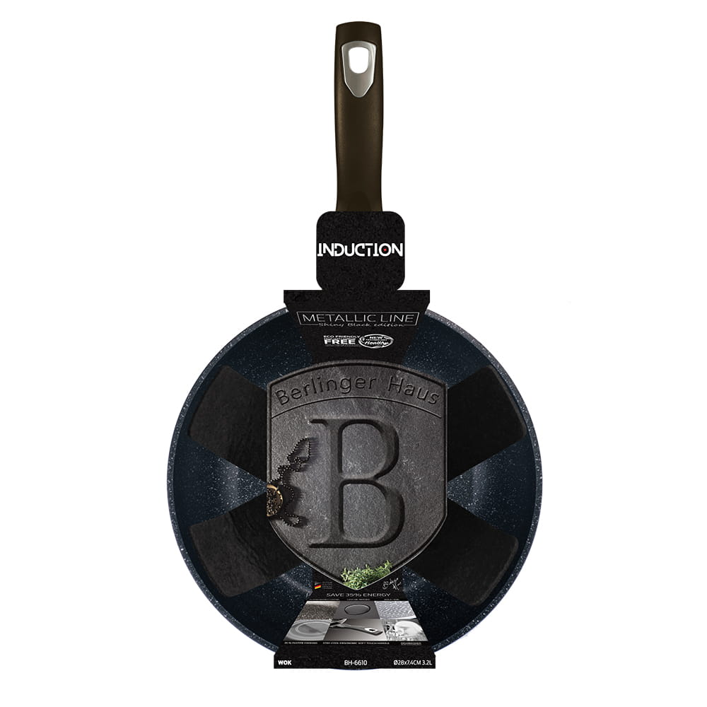 Granite-coated wok 28cm, BERLINGER HAUS Shiny Black, BH-6610