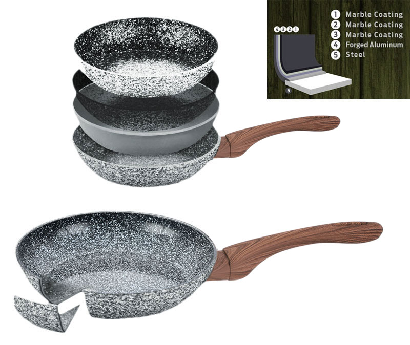Granite coating gives a greater hardness. The pottery material is harder than Teflon,