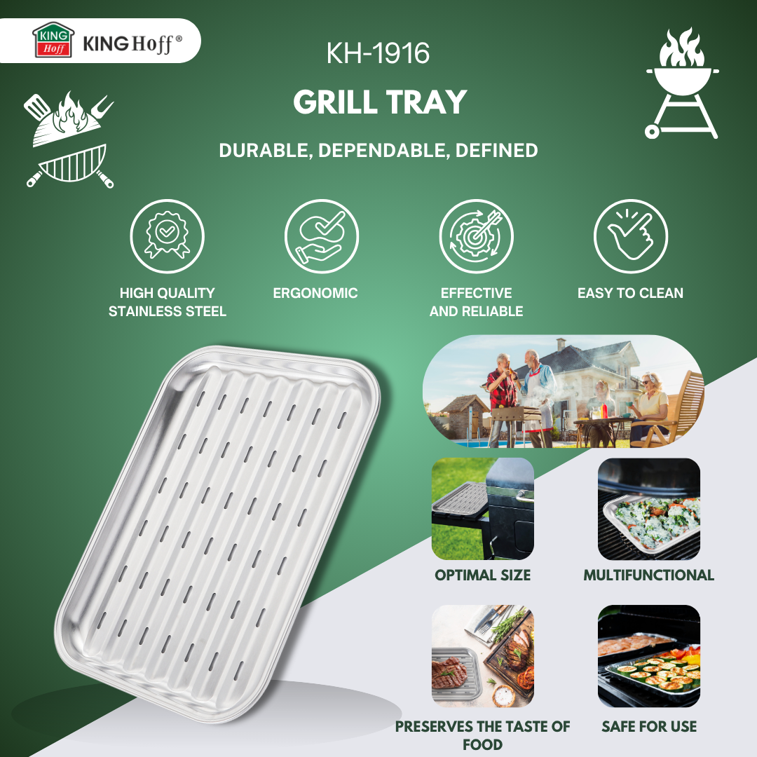 Grill Tray, Reusable, 34x24x2cm, Stainless Steel, KINGHOFF KH-1916