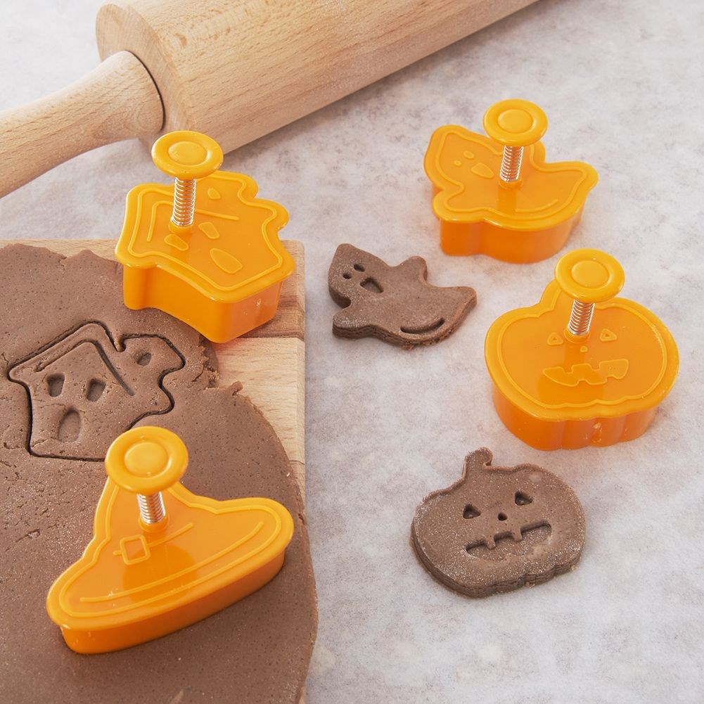 - PRACTICAL- A set of four confectionery cutters with a piston in the shapes of: a ghost, a pumpkin, a haunted house and a hat. Perfect for preparing cookies and gingerbread for Halloween.