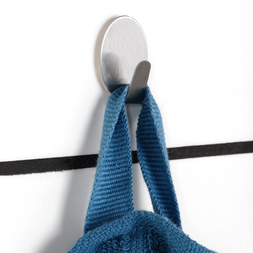 Oval, mini self-adhesive hook. Made of matte stainless steel. Perfect for hanging small towels or kitchen cloths.