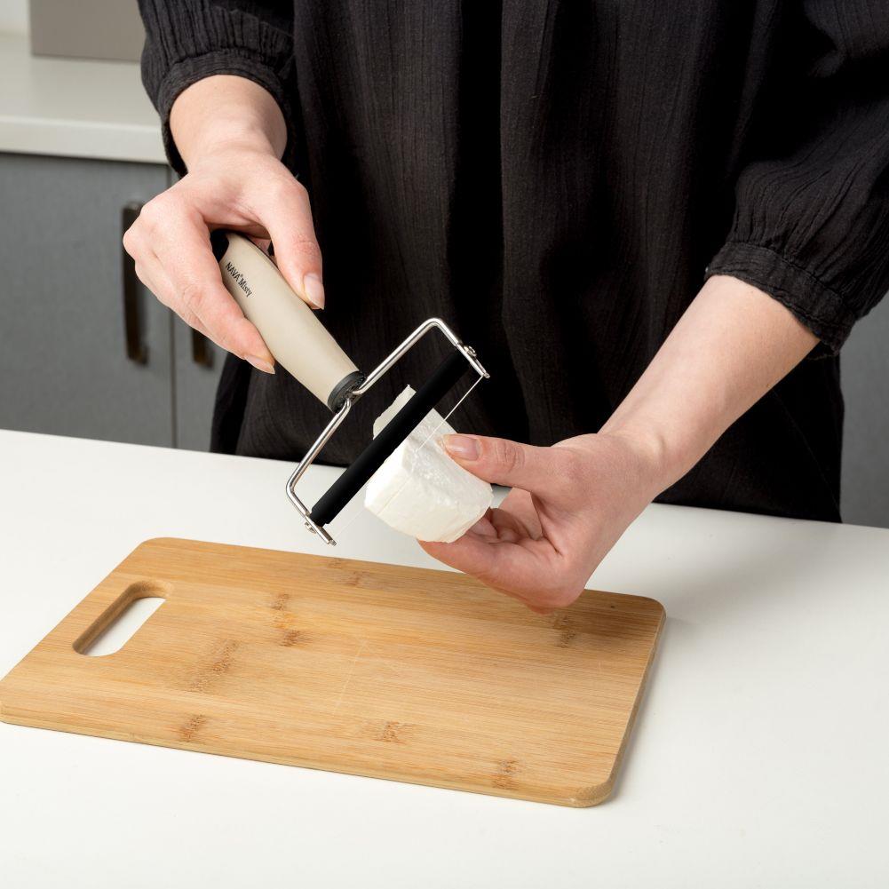 Ruchomy wałek z tworzywa sztucznego ułatwia krojenie sera.