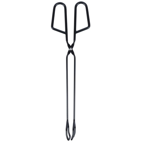 Tongs helpful when turning over fried, baked, grilled products and for serving. Made of black metal with a non-stick coating.