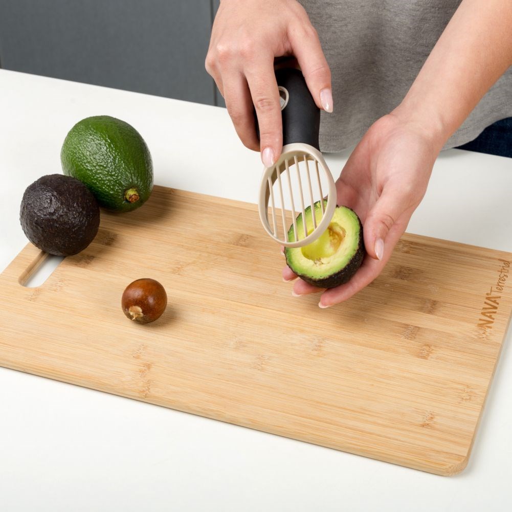 Thanks to this special slicer, we can easily cross, remove the stone and get the perfect avocado slices.
