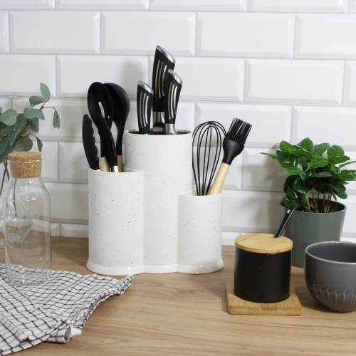 Knife stand, kitchen utensils, triple universal white BRUNBESTE BB-3789