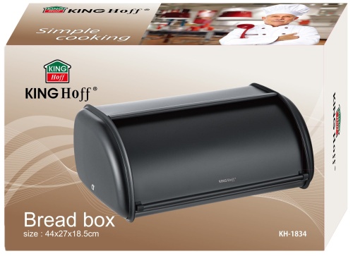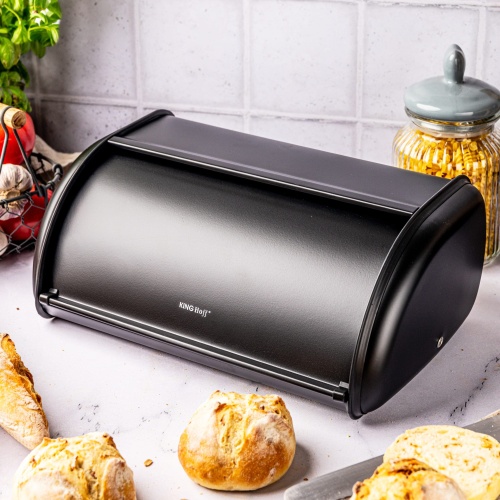 Large steel bread bin 44cm matte black KINGHOFF KH-1834
