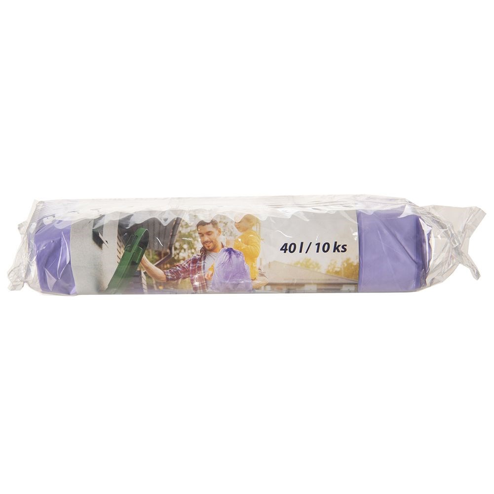 Set of 10 garbage bags with a capacity of 40 liters. Made of purple HDPE. The bags have a lavender scent and are equipped with a drawstring.