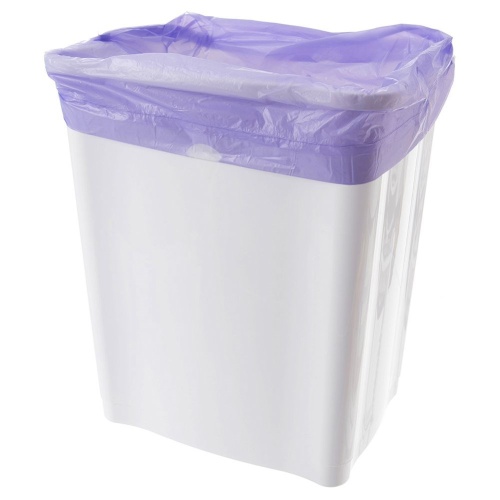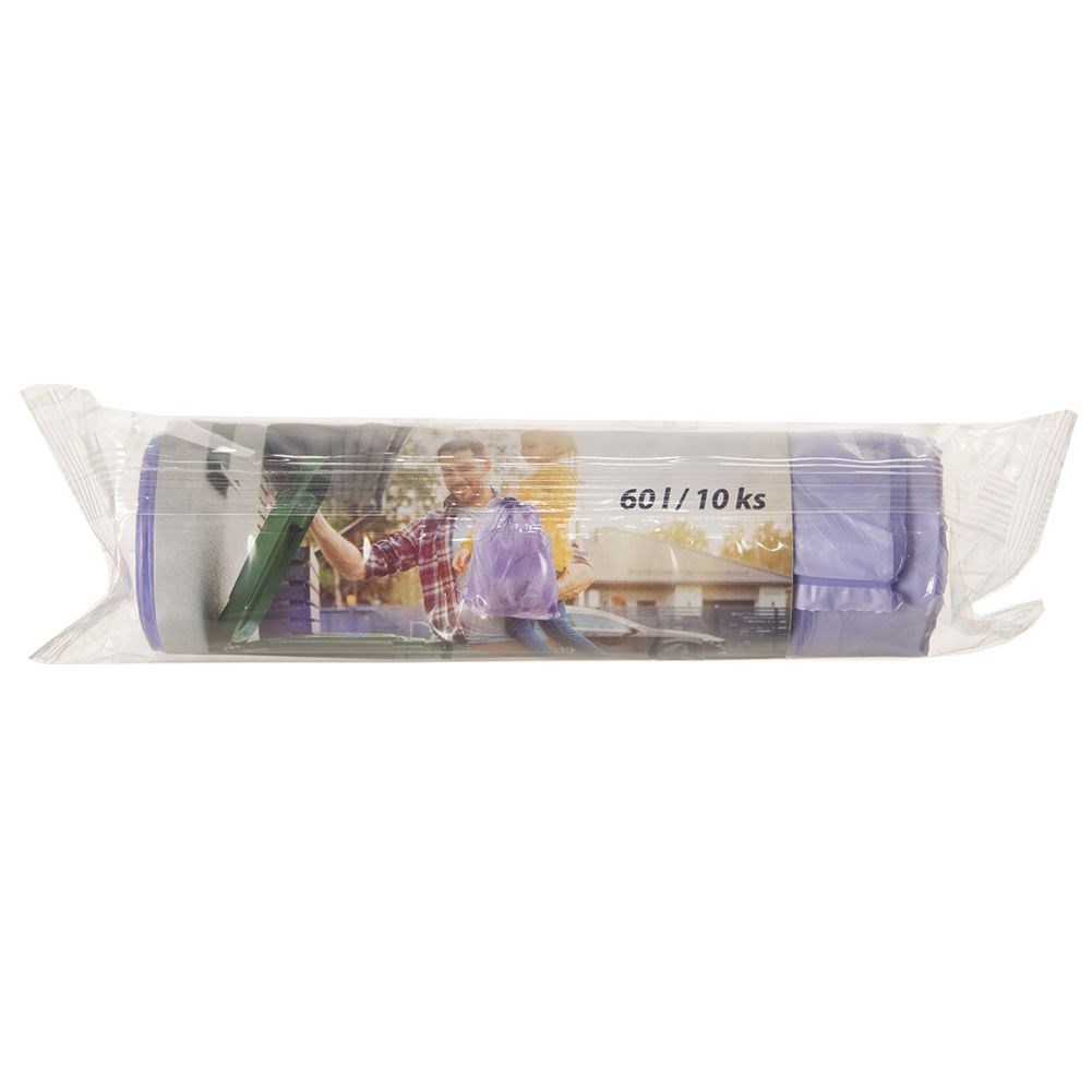 Set of 10 garbage bags with a capacity of 60 liters. Made of purple HDPE. The bags have a lavender scent and are equipped with a drawstring.