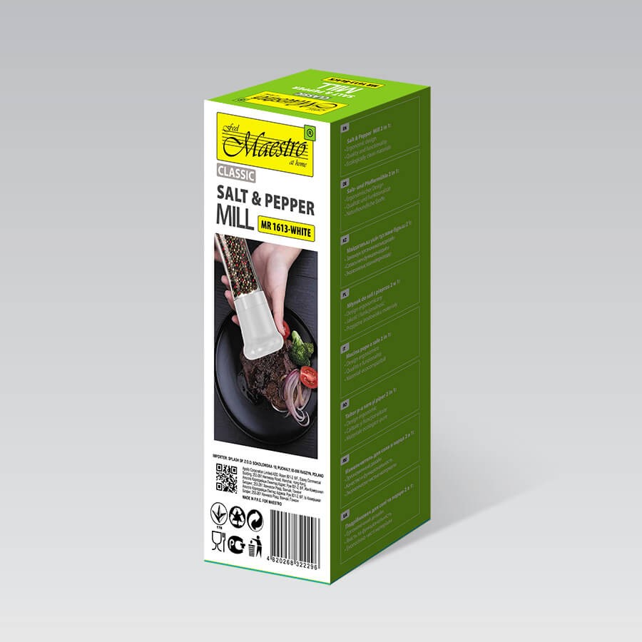 Manual salt and pepper grinder for spices in grains, white MAESTRO MR-1613-WHITE