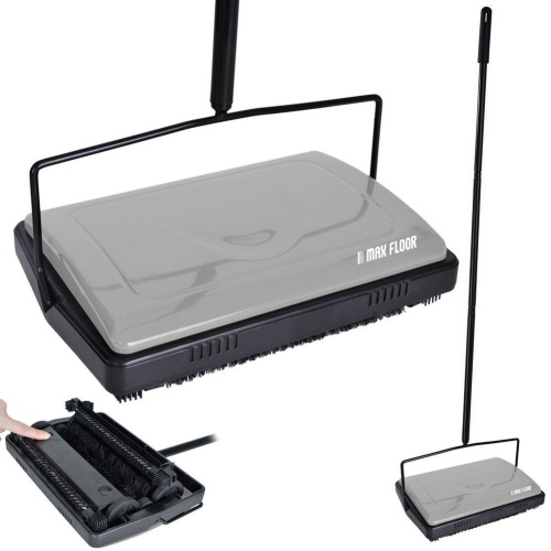- PRACTICAL- Hand-held mechanical vacuum cleaner with a stick, used for regular cleaning of all types of floors. The vacuum cleaner does not require electricity or batteries. Vacuum cleaner dimensions: 28 x 20 x 6 cm. Handle length: 93 cm.