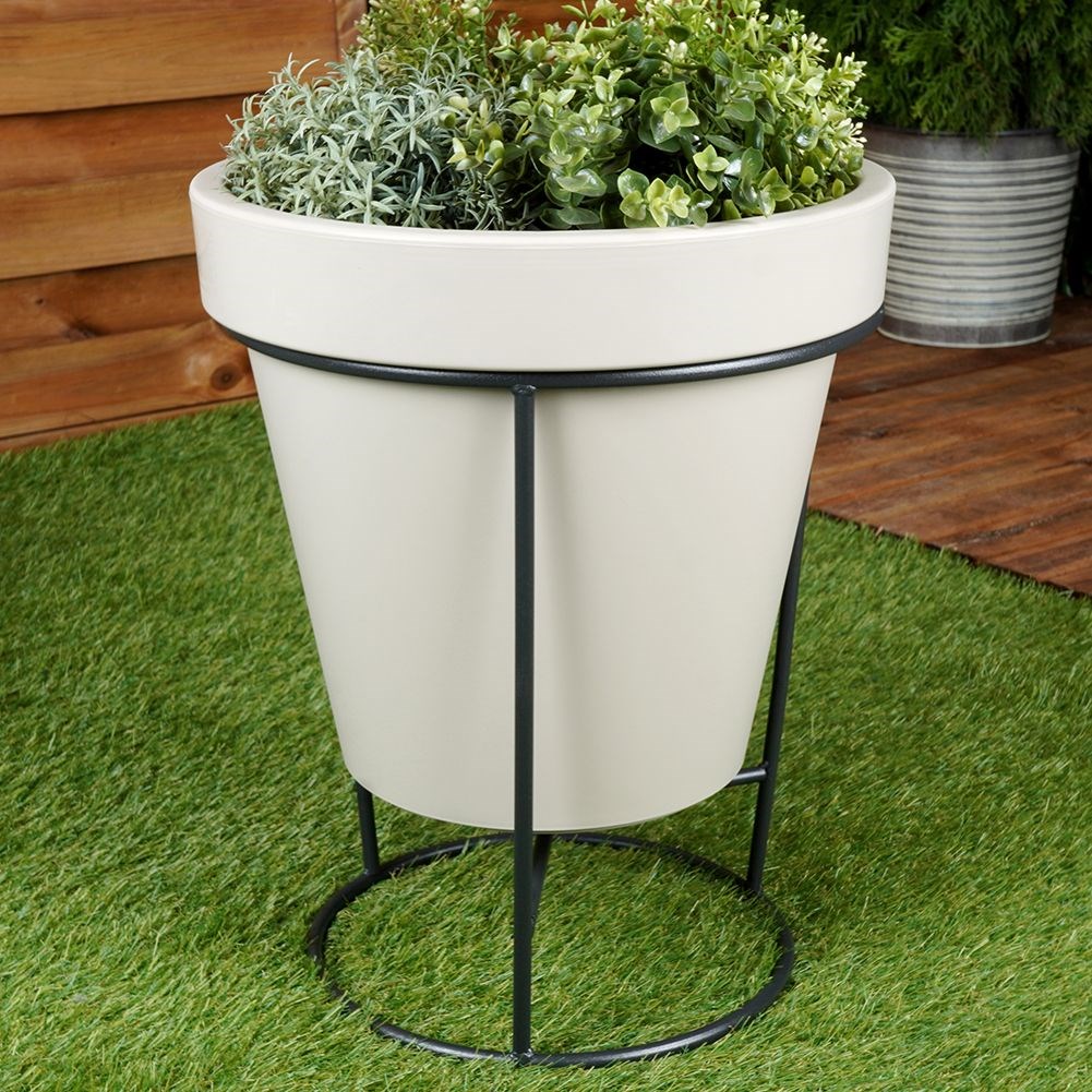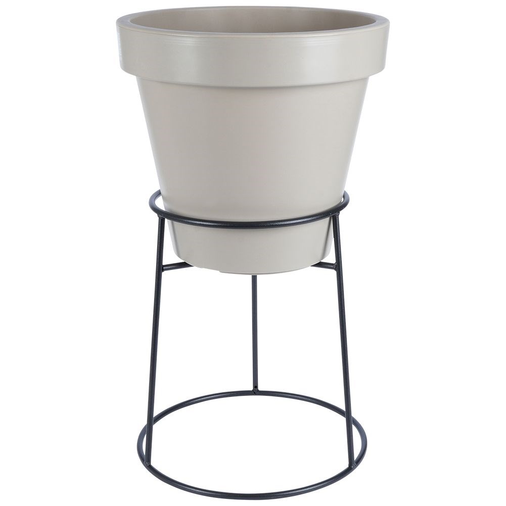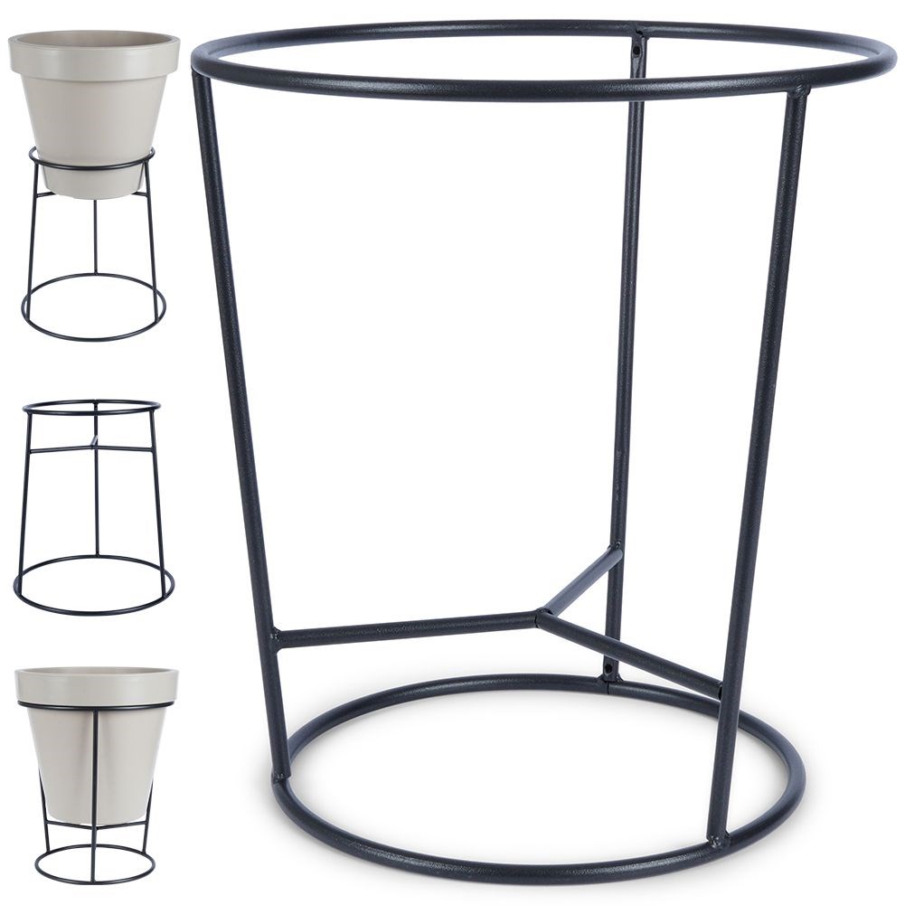 Flowerpot stand made of black steel. We can use it on both sides, suitable for a pot with a diameter of 35 cm or 28 cm.