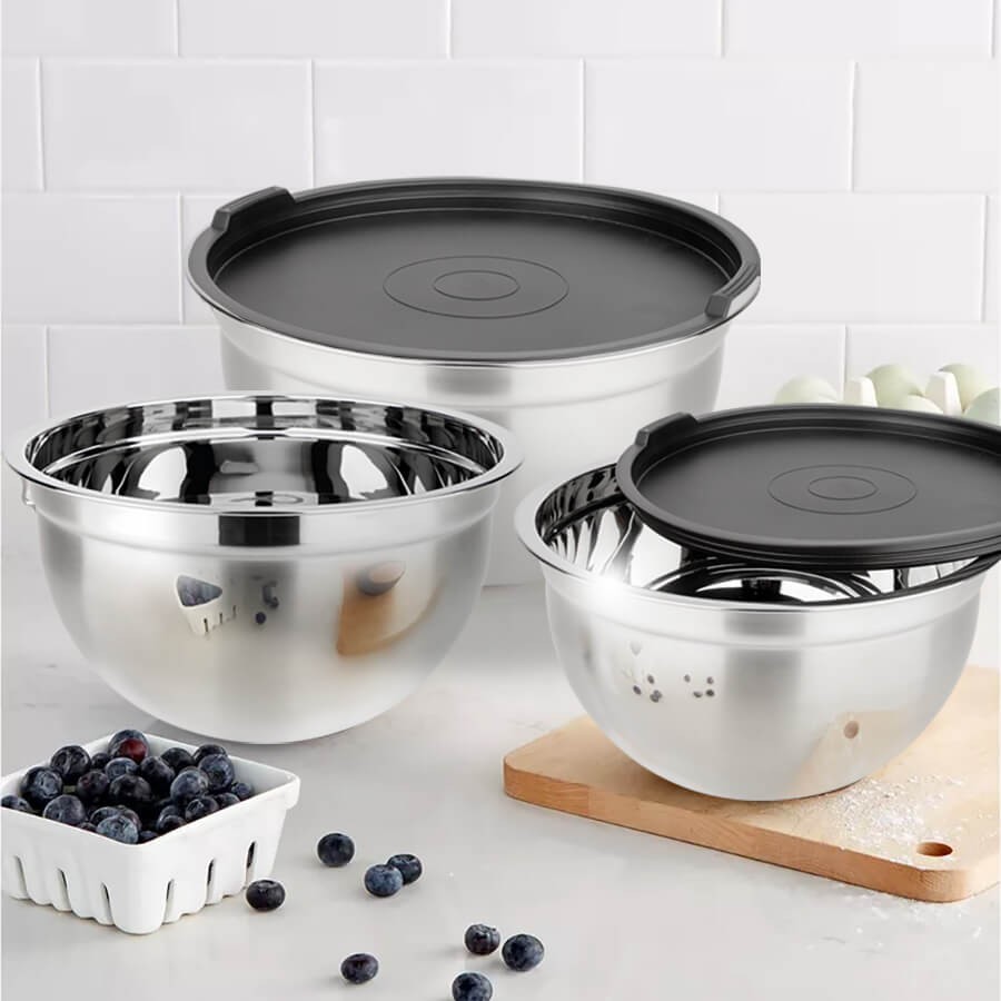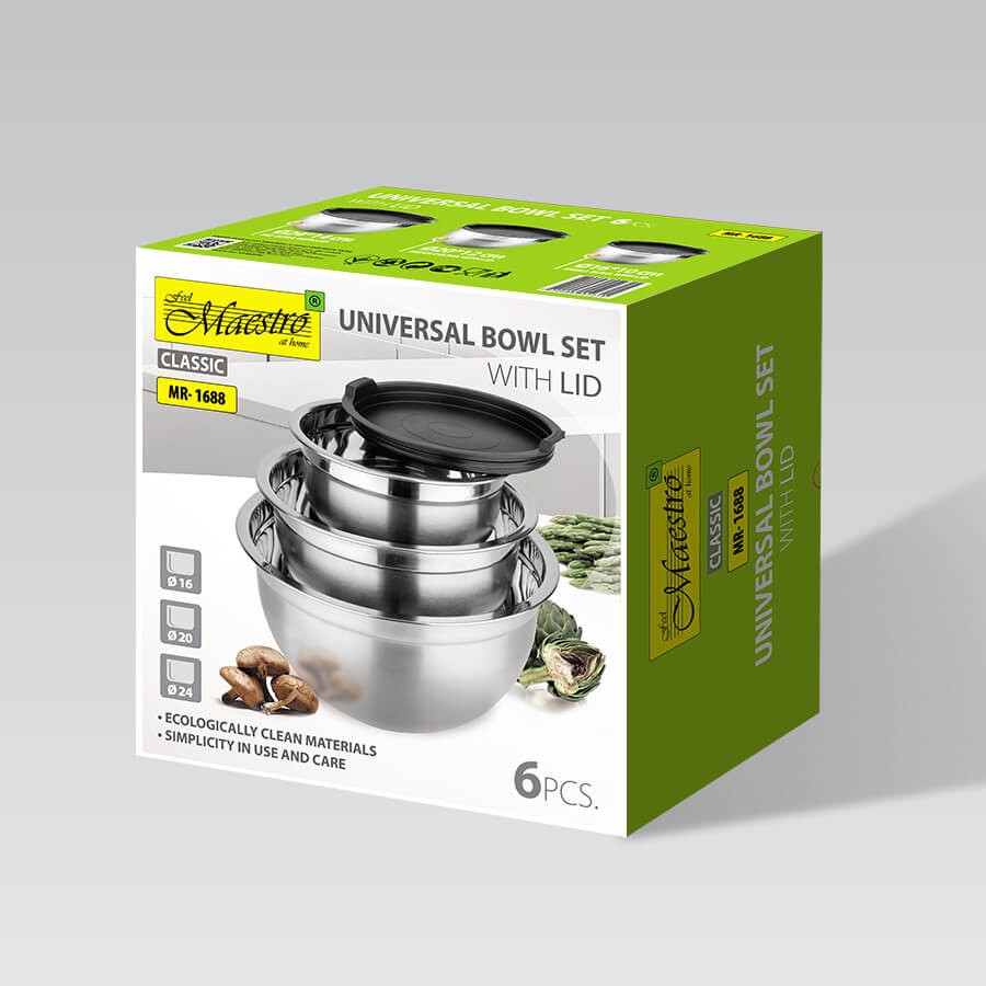 Metal kitchen bowls, set of bowls with lid 16/20/24CM 3PCS MAESTRO MR-1688