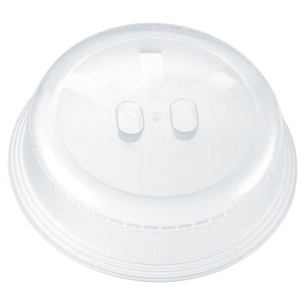 Microwave cover made of plastic. Prevents food from splattering and drying out when heated in a microwave. Easy to use.