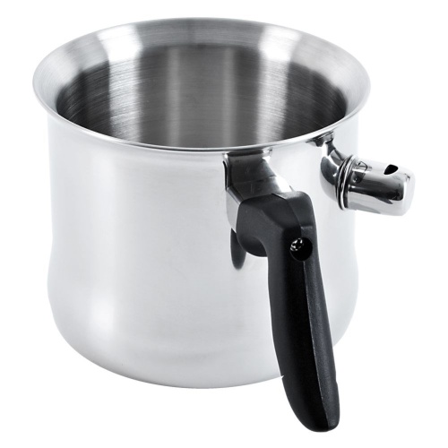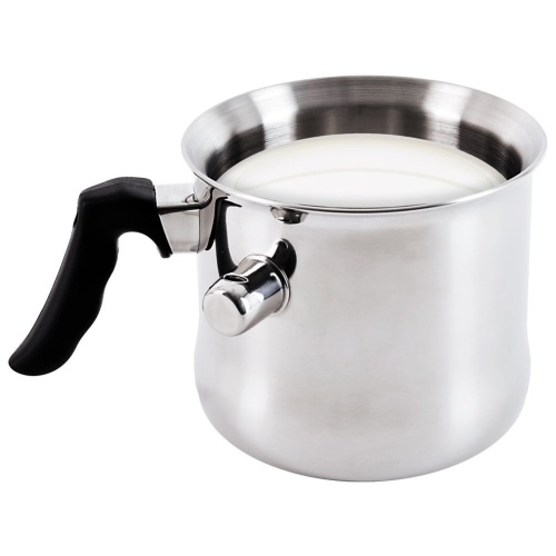 - PRACTICAL- A pot for boiling milk with a water jacket. Suitable for all types of cookers including induction. The pot measures 18 x 13 cm and has a capacity of 2.5 liters.
