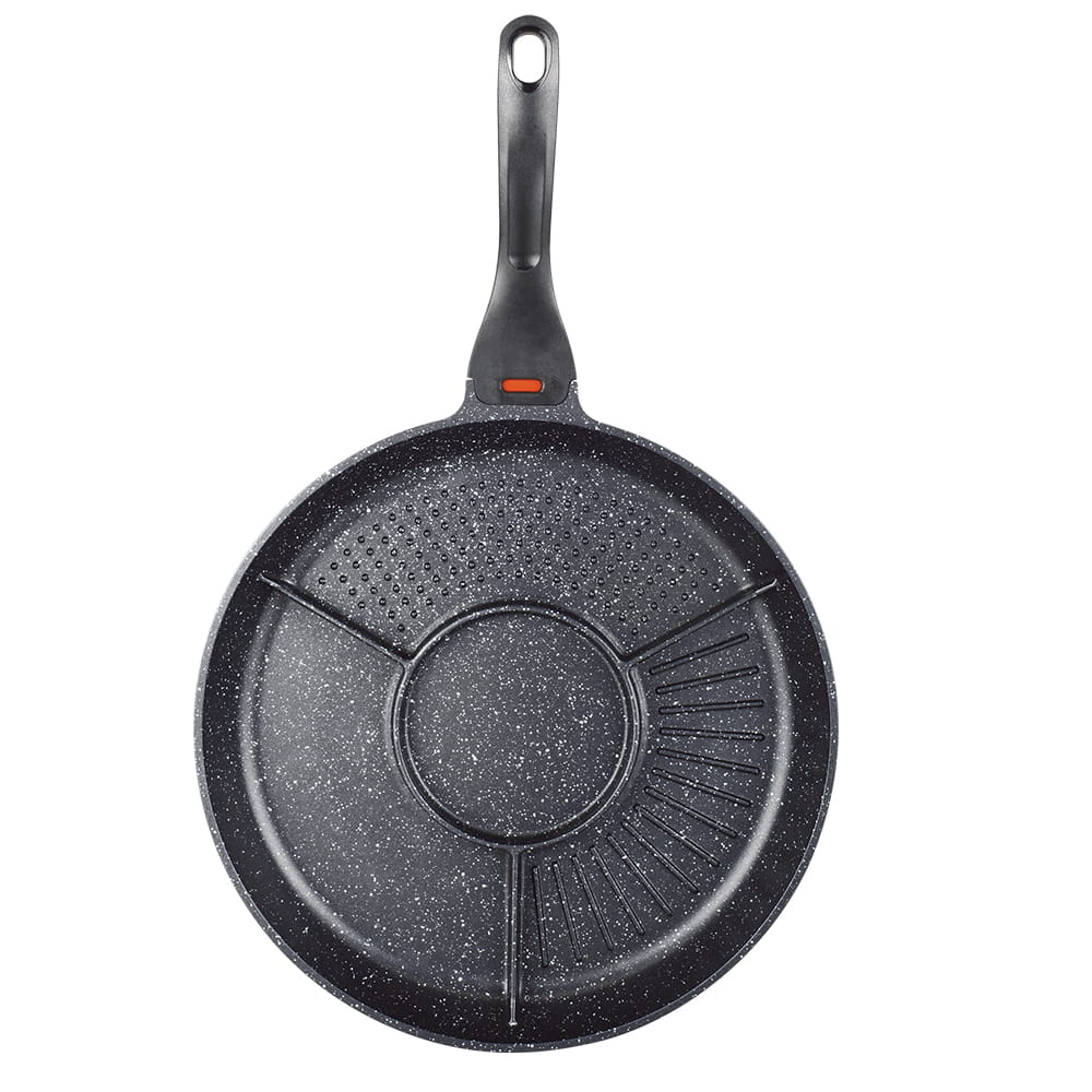 Granitowa powłoka sprawia, że naczynia są wyjątkowo odporne na wszelkie zarysowania i trwałe. Ten typ garnków i patelni pozwala również na smażenie przy użyciu minimalnej ilości tłuszczu, ponieważ naczynie rozgrzewa się podobnie do kamienia i oddaje ciepło całą swą powierzchnią.