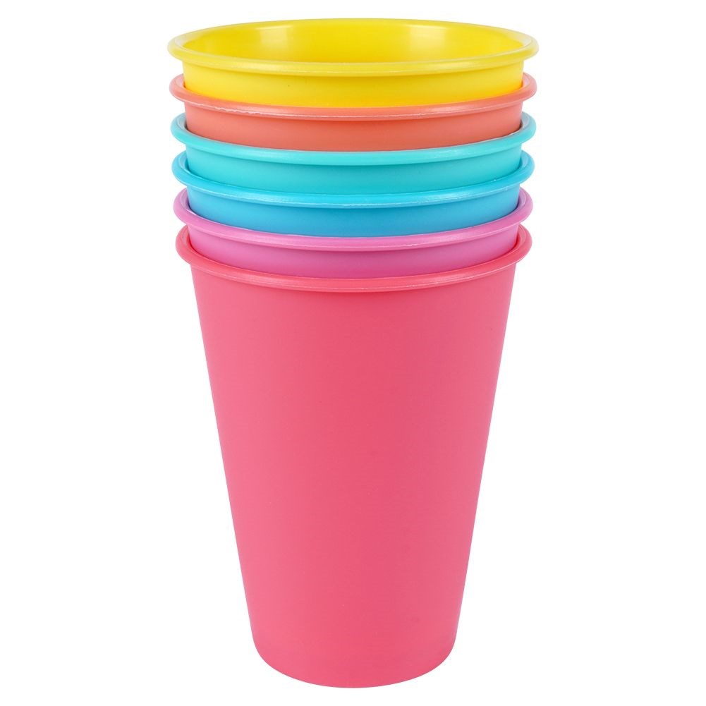 - Reusable- Made of the highest quality plastic in six colors. In the set in the color in the color: orange, red, yellow, blue, pink and also turquoise. The cups don't break.