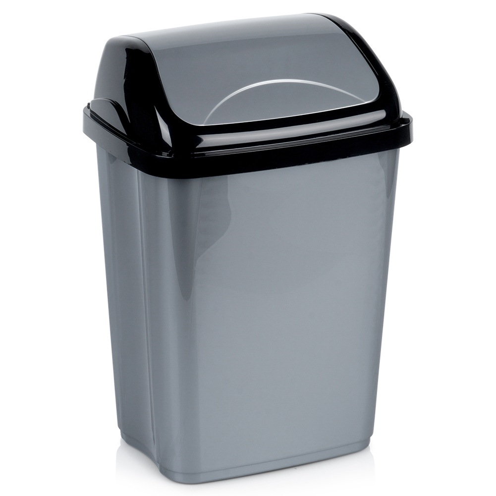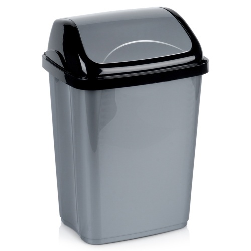 Waste bin with a capacity of 10 liters. Made of durable plastic in a gray, shiny color. Equipped with a hinged lid, which makes it easier to dispose of waste.