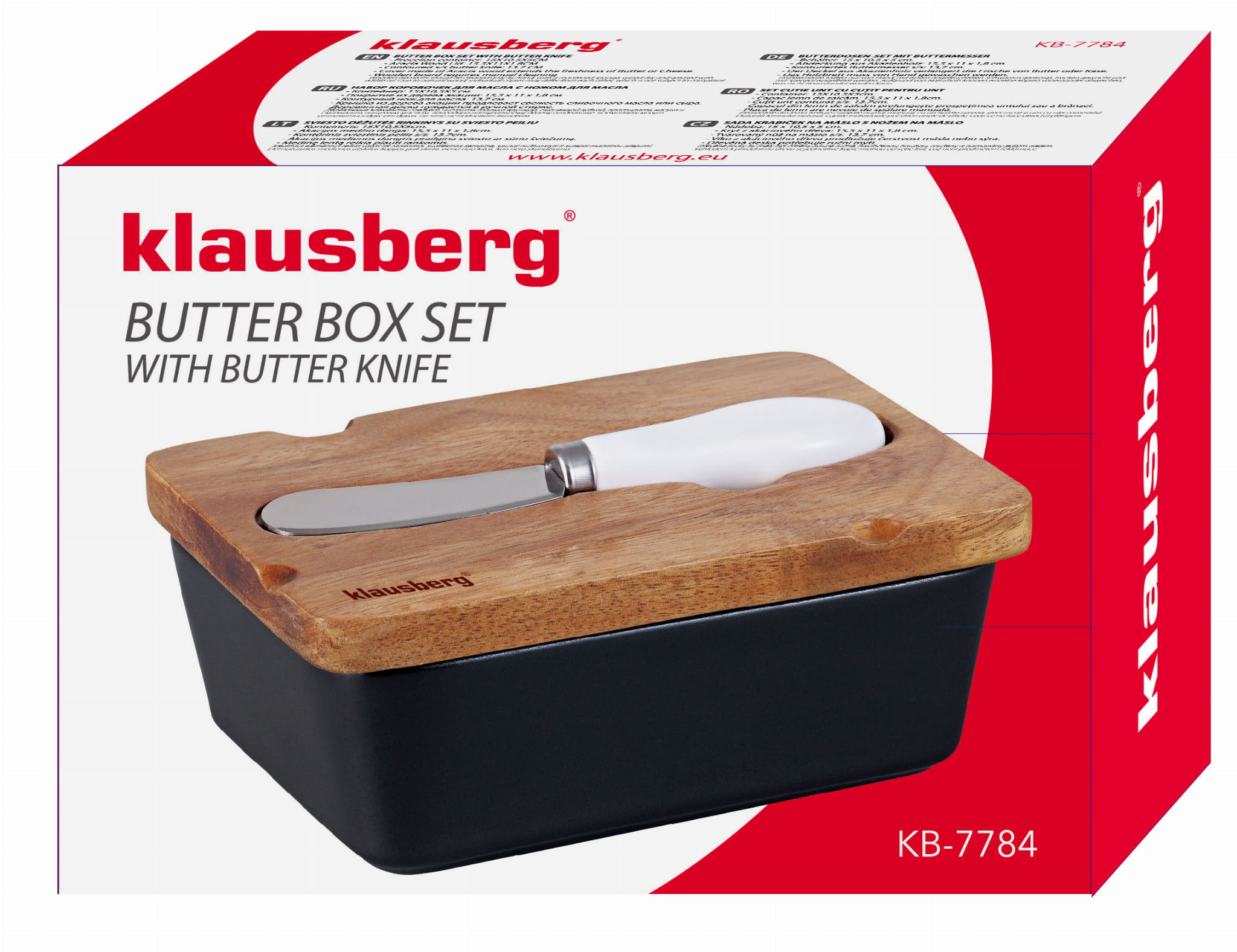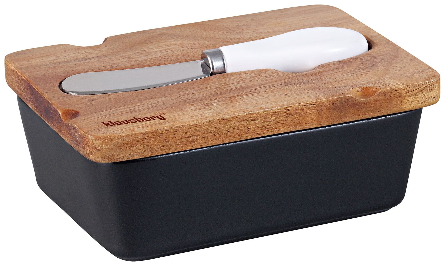 Porcelain butter bowl black with knife lid acacia KLAUSBERG KB-7784