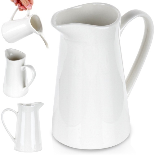 - Porcelain- milk with a handle made of white porcelain. Useful when serving coffee with milk or sauce. The milk has dimensions of 11 x 6.5 and a capacity of 200 ml.