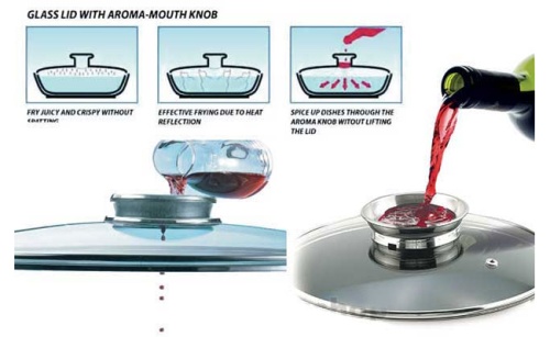 The glass lid is made of tempered glass and has a special handle.