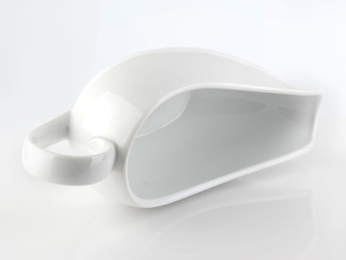 Sosjerka z jakościowej porcelany pozbawionej zdobień.
