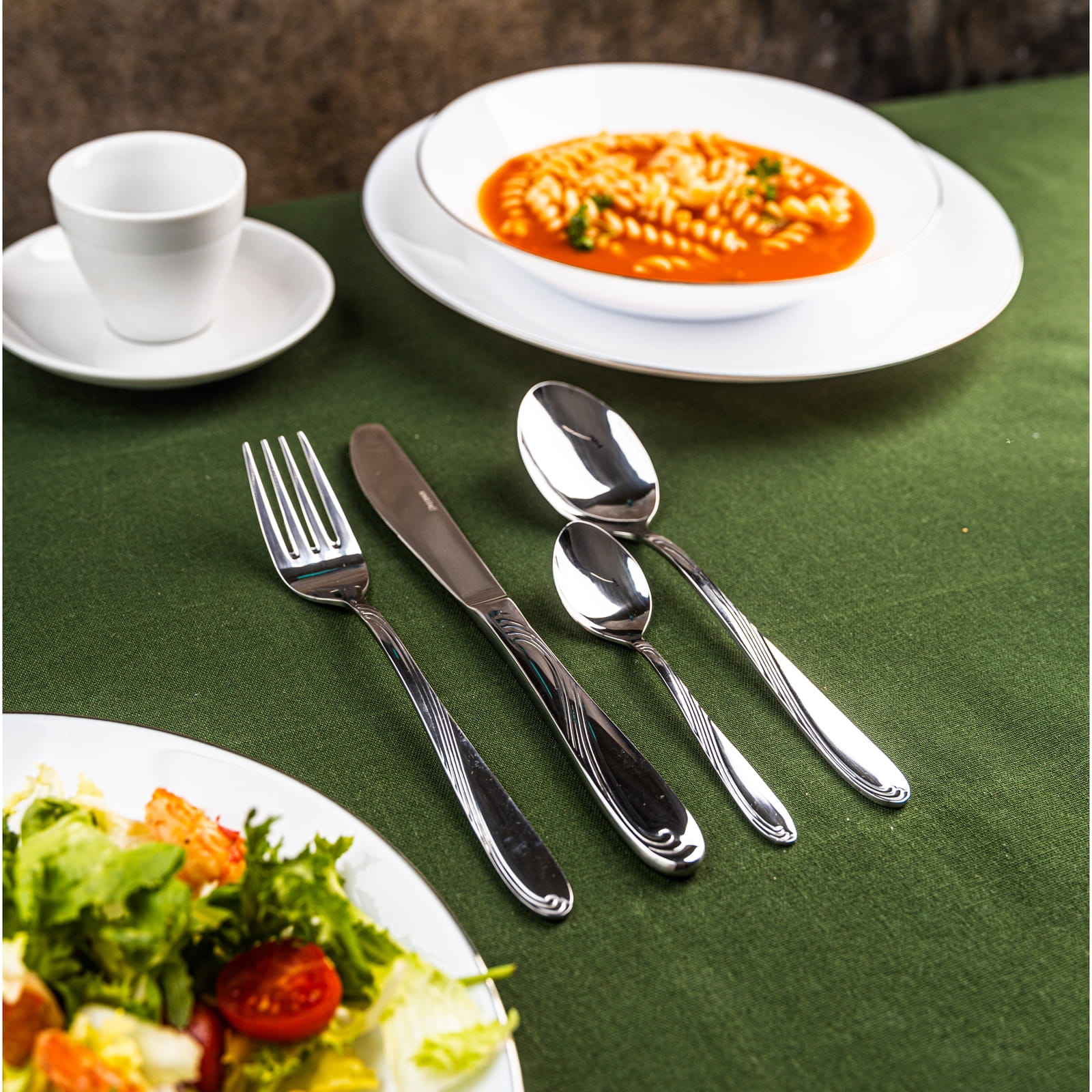 Sztućce wykonane są z najwyższej jakości stali nierdzewnej polerowanej na wysoki połysk.