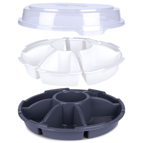 Serving plate with lid, six removable inserts. Perfect for snacks, appetizers, but also for serving dips.