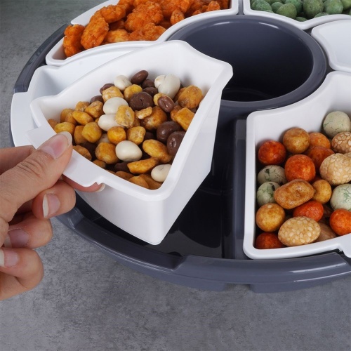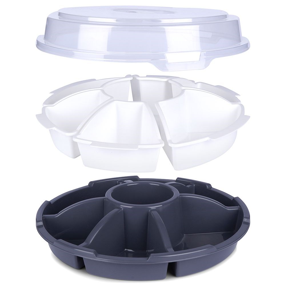 - FUNCTIONAL- The cover will keep stored snacks fresh for longer and will additionally protect them during transport. The handle ensures comfortable carrying. Equipped with easily removable snack inserts, which allows you to use the plate without them.
