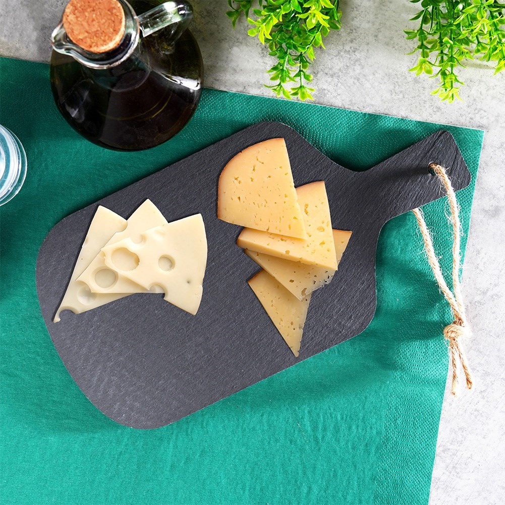 A stone serving tray, also ideal as a base for other dishes. It has thermal properties, you can serve hot and cold dishes on it.