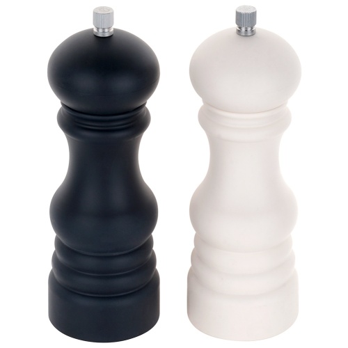 A set consisting of pepper and salt grinding mills. Black and white grinders for the convenience of use. They look great on the table.