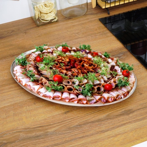 - UNIVERSAL- The trays will be useful both for home use and in catering. We will use them during parties and family gatherings. We can conveniently serve dishes, fruit or snacks on them.