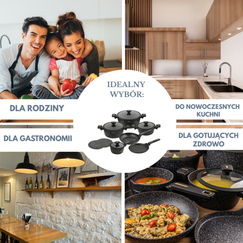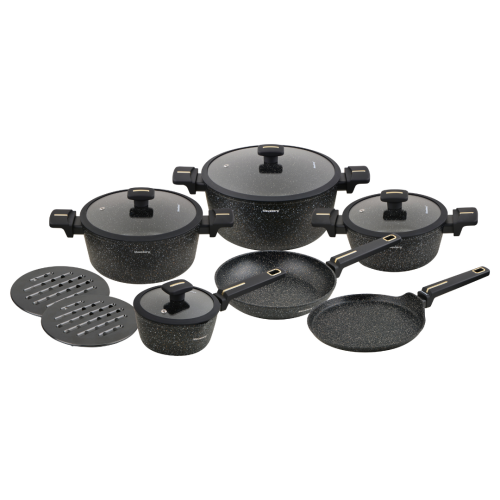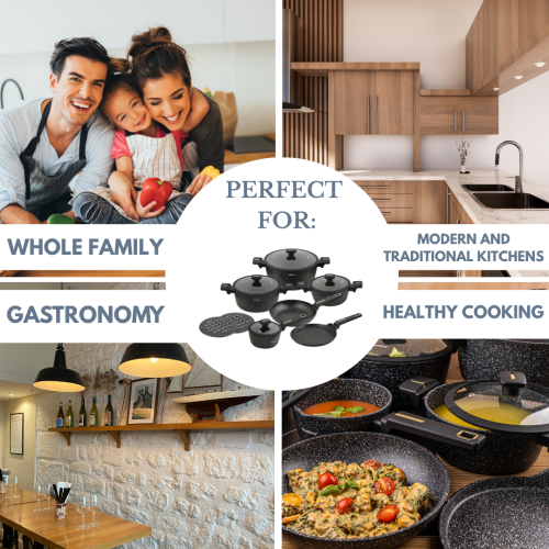 The KLAUSBERG KB-7966 set is a complete, modern set of kitchen utensils made of cast aluminum with a durable marbled non-stick coating. Thanks to its solid workmanship, elegant design and versatility, it is an ideal choice for anyone who values cooking comfort and high quality.