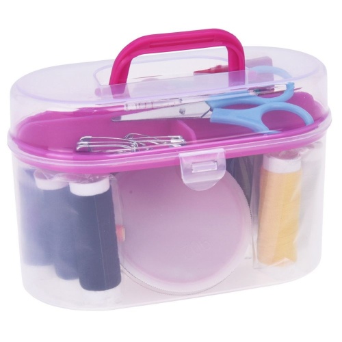 Tailor's sewing kit - container, threads and needles. Who among us has not had a hole or a seam come undone in our favorite trousers, blouse or other items of clothing? You can insure yourself against such cases - just buy a practical sewing container with threads and needles. You can forget about throwing away clothes just because of a small hole. Now you can quickly sew it yourself. The set we offer includes as many as 50 elements - you can be sure that all the necessary items will be in one place. The set includes colorful threads, miniature scissors, needles, a thimble, a needle cushion and other practical sewing items. Choose a functional sewing set.