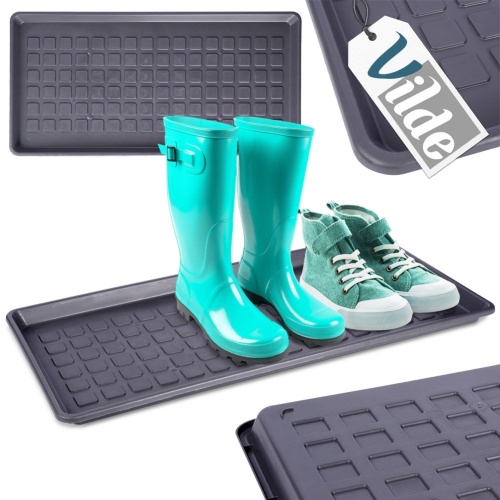 The rectangular shoe mat will allow you to conveniently store even several pairs of shoes. Thanks to it, you can put dirty shoes back in their place, avoiding getting the floor dirty. The mat is useful in every home. It will be perfect placed in the hall, on the terrace or in the corridor. Resistant to moisture and dirt.Original Vilde product.Manufactured in accordance with European standards.