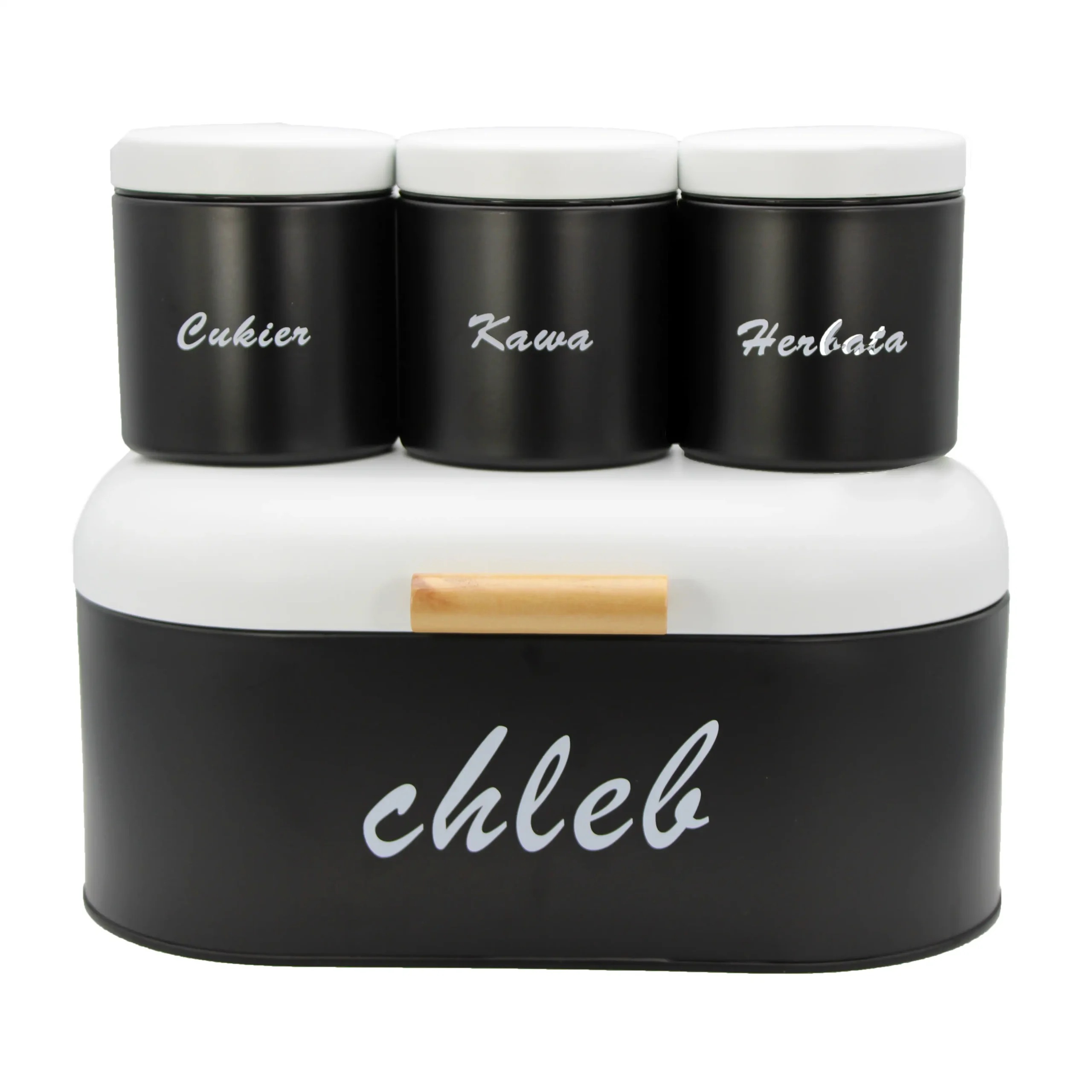 Small metal bread box + 3 containers for coffee, tea, sugar, spices BRUNBESTE BB-2669