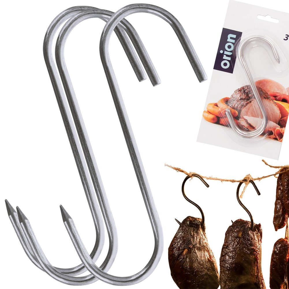 Set of three smoking hooks. They will allow you to conveniently and safely smoke meat, fish or sausages in the smokehouse. They ensure free access of smoke to the entire surface of the meat, thanks to which the products will be evenly smoked. Using hooks while smoking allows you to move and turn the meat freely. They will also be helpful in storing meat outside the smokehouse.Original product of the Czech brand Orion.Manufactured in accordance with European standards.