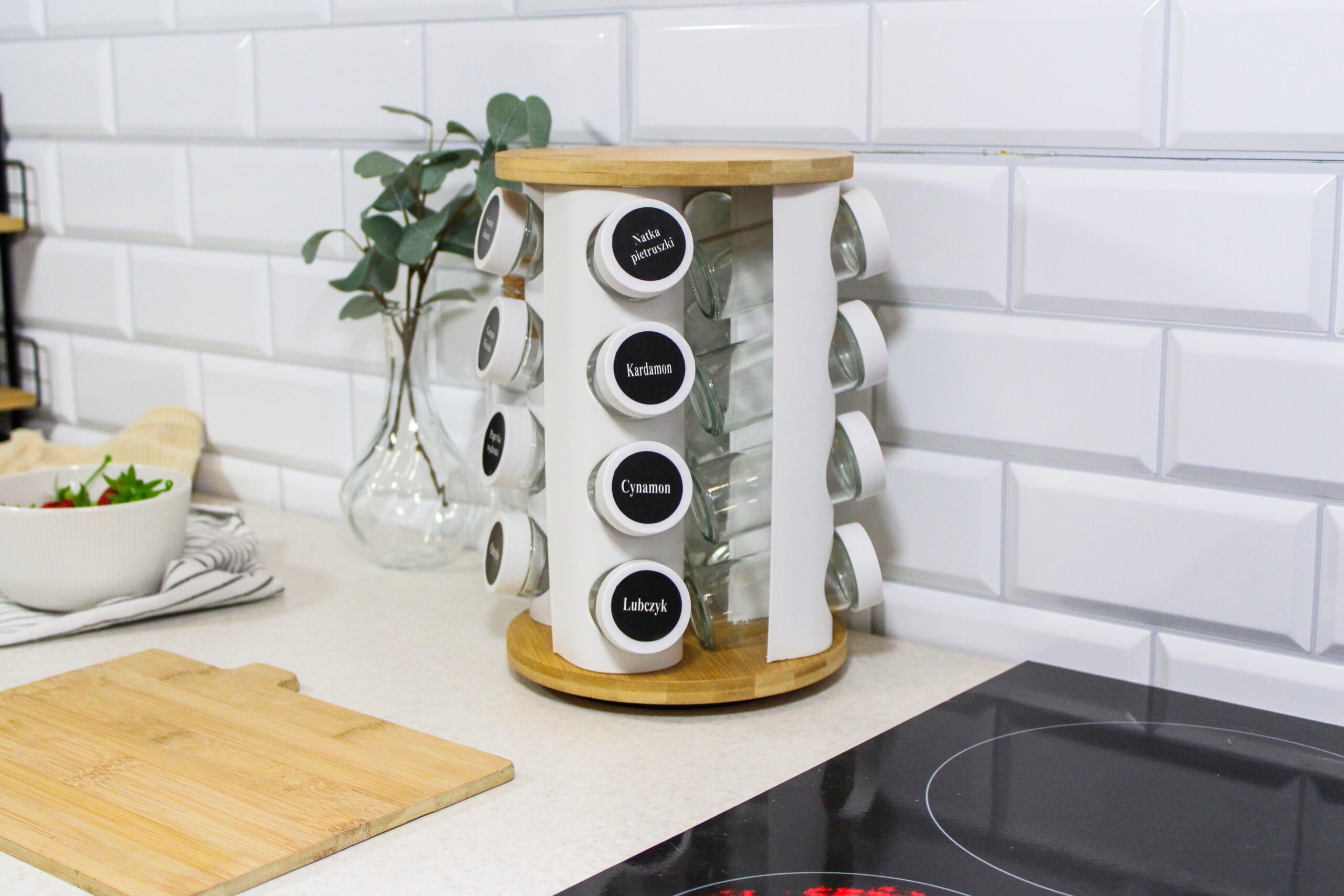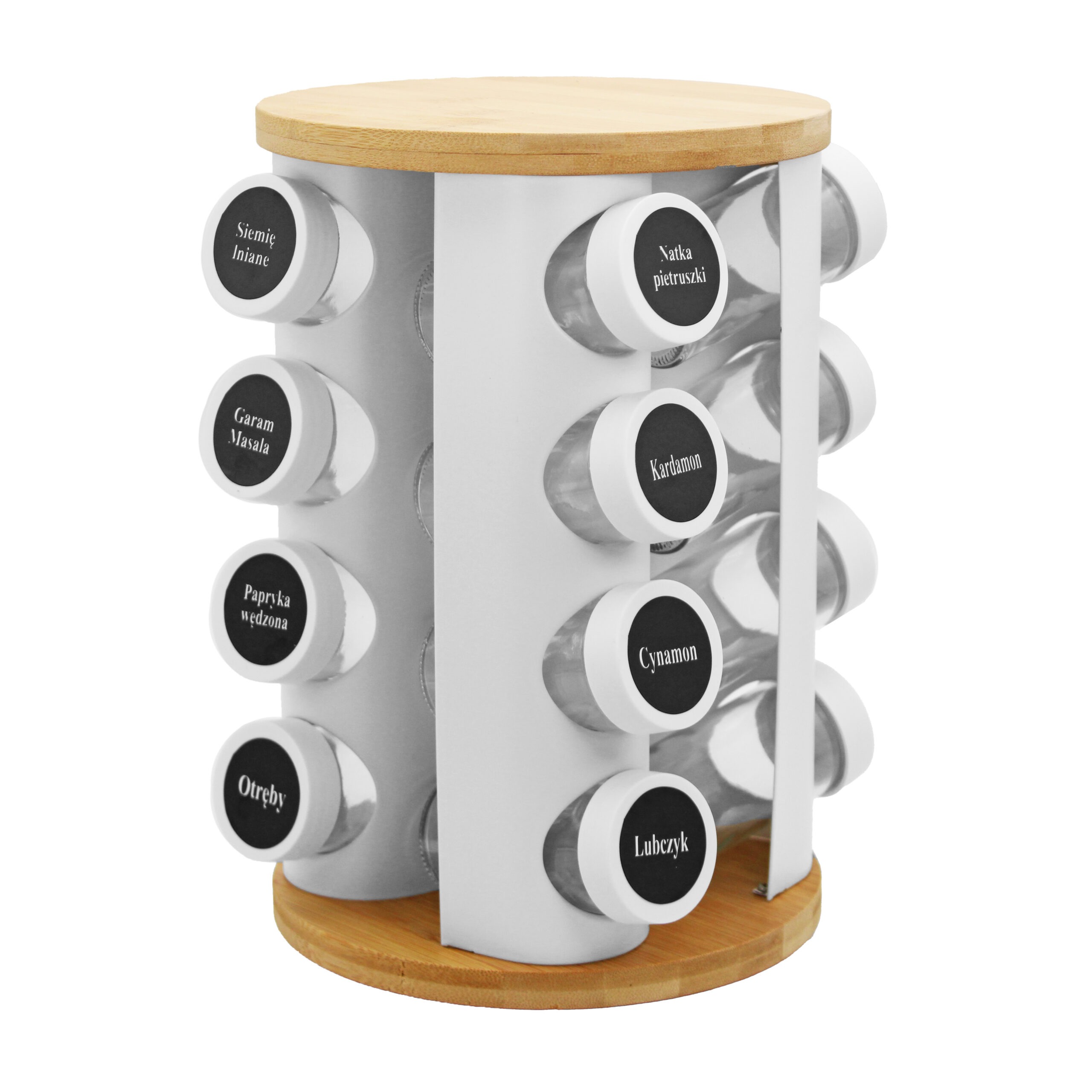 The Brunbeste rotating spice rack is an innovative solution for the kitchen - it allows convenient storage and instant access to up to 16 different spices in one place. Solid metal construction and natural bamboo wood and glass elements combine durability with modern aesthetics. It is the perfect choice for those who value order, design and efficiency when cooking.