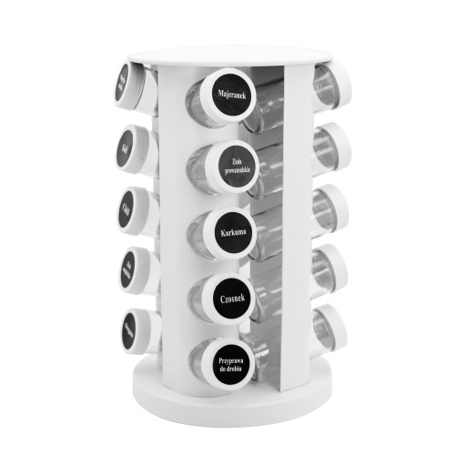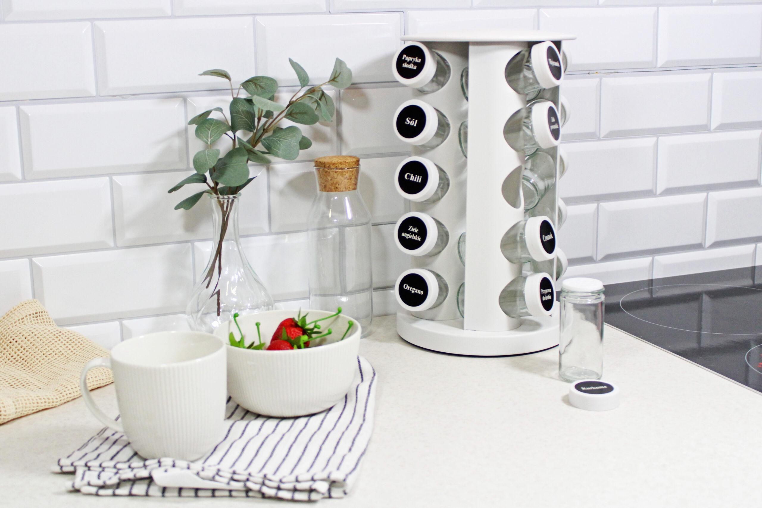 Just turn the stand slightly to find the spice you need. The smooth surfaces are easy to keep clean, and the included stickers with names help you quickly label the contents. This is the perfect solution for a modern and classic kitchen.