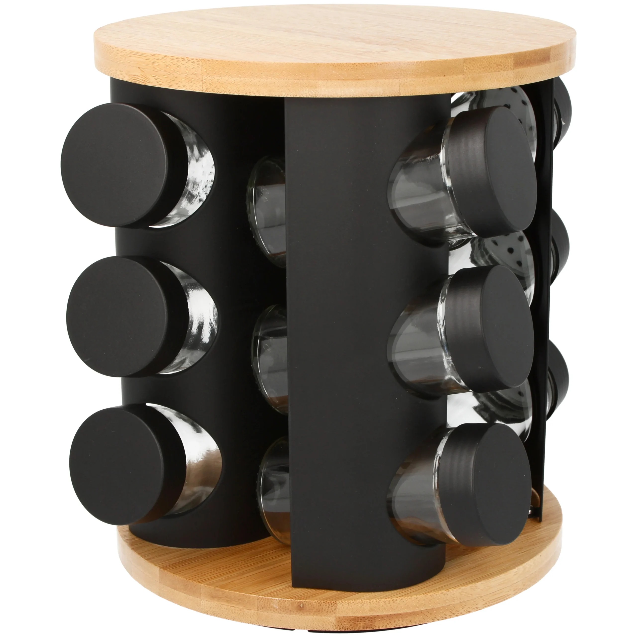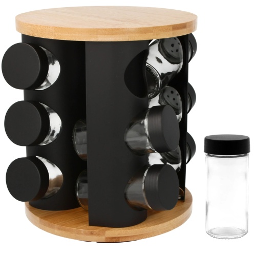 The Brunbeste rotating spice rack is a practical and stylish solution for your kitchen. Thanks to the design that allows you to store up to 12 jars of spices and a rotating base, you geteasy access to every spice in one place. Natural bamboo wood combined with metal elements in classic black creates an elegant accent that will add character to any interior.