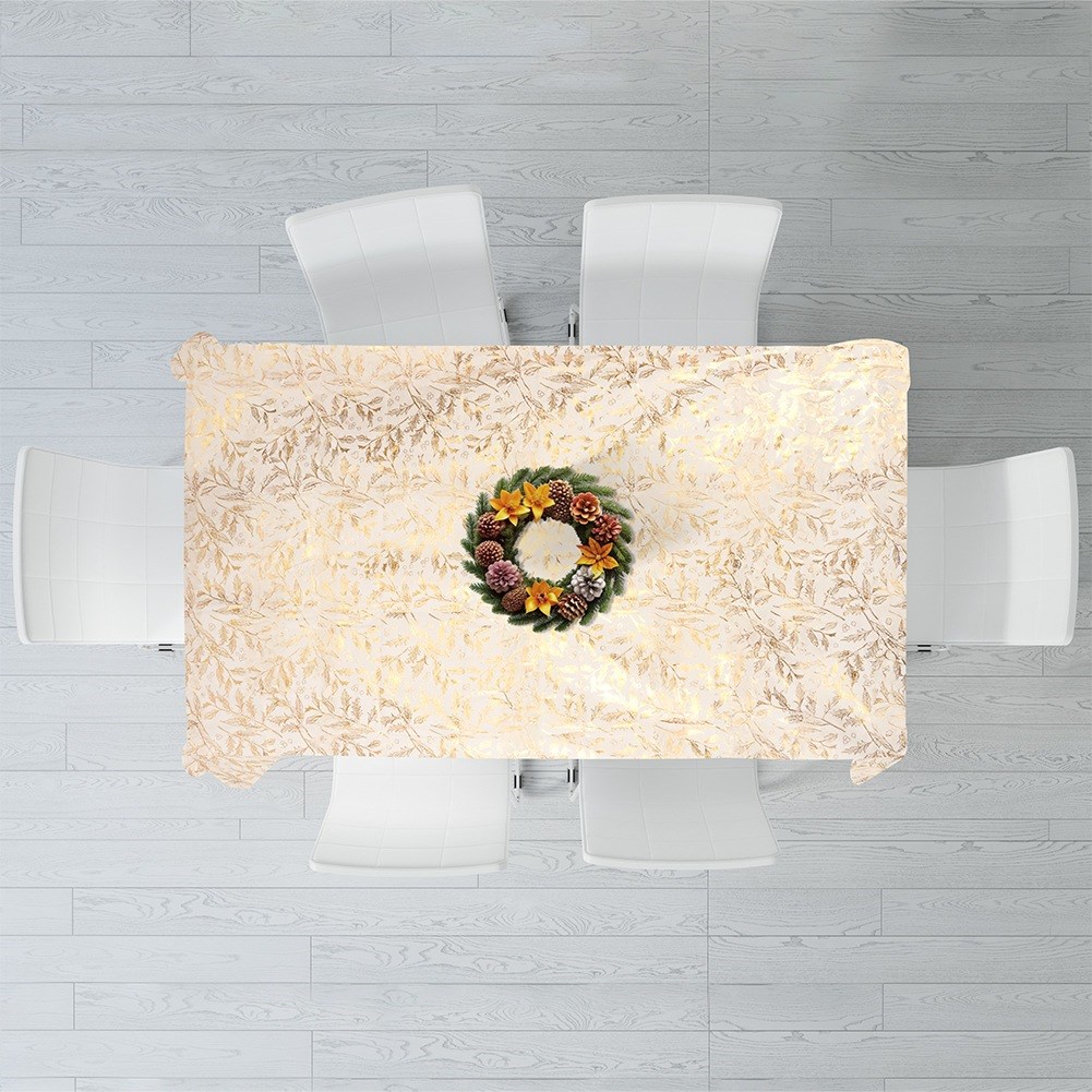 Stain-resistant white tablecloth with a Christmas motif. It has a classic, rectangular shape with dimensions of 220x150 cm. Perfect for the winter and holiday season.