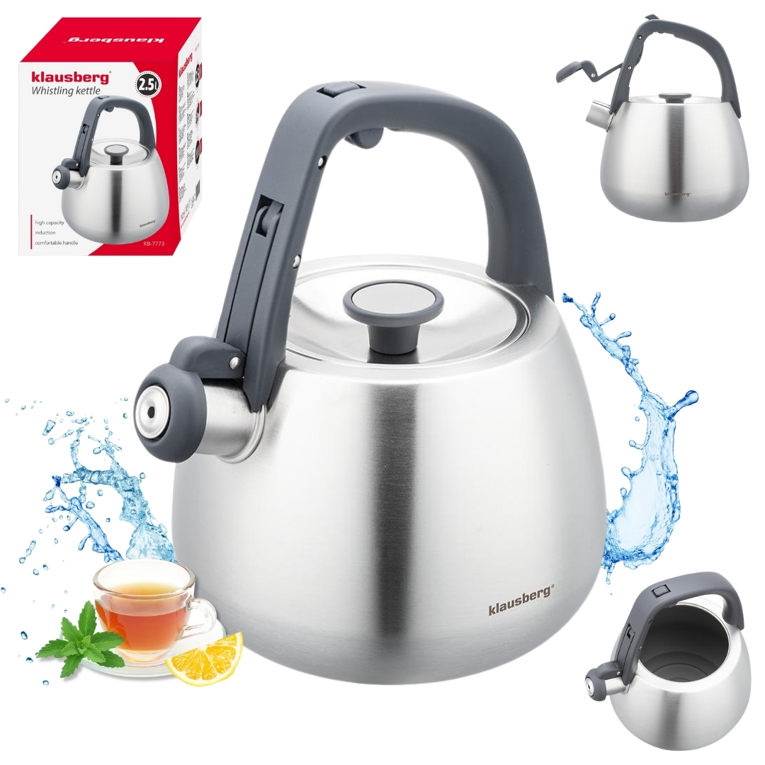 Stainless Steel Kettle for Gas 2.5L Induction Silver Satin Finish KLAUSBERG KB-7773